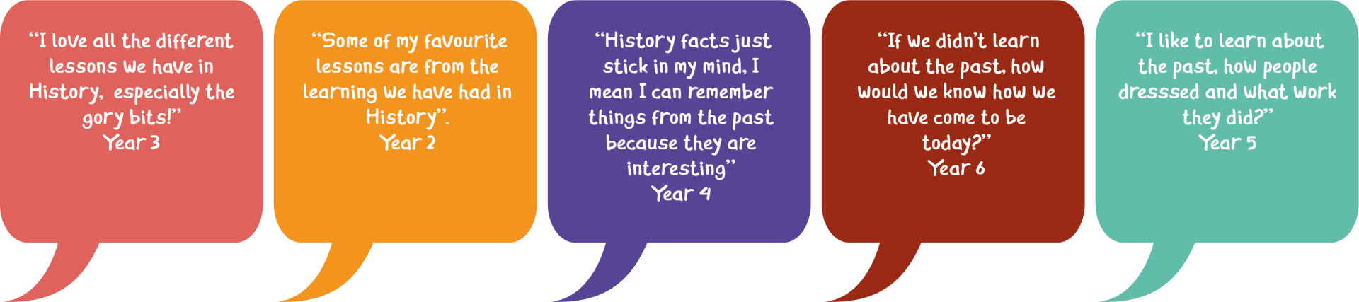 History is about real people who lived, and real events which happened in the past. History is concerned with sequence, time and chronology and is the study of evidence about the past; it gives us a sense of identity, set within our social, political, cultural and economic relationships. History fires the children’s curiosity about the past in Britain and the wider world and plays an essential part in preparing us for living and working in the contemporary world. Pupils consider how the past influences the present, what past societies were like, how these societies organised their politics, and what beliefs and cultures influenced people’s actions. As they do this, children develop a chronological framework for their knowledge of significant events and people. They see the diversity of human experience, and understand more about themselves as individuals and members of society. What they learn can influence their decisions about personal choices, attitudes and values. In history, children find evidence, weigh it up and reach their own conclusions. To do this they need to be able to research, sift through evidence, and argue for their point of view – skills that are prized in adult life.