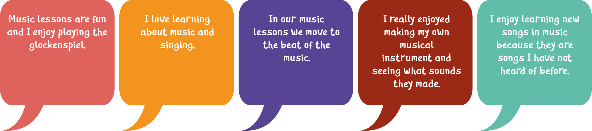 You can see some of the impact of our curriculum in the work at the top of the page. We also have some quotes from children when asked about their Music lessons…
