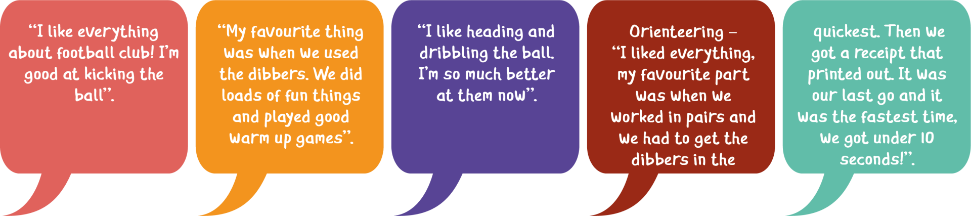 You can see some of the impact of our curriculum in the work at the top of the page. Below you will find some quotes from children when asked about their PE lessons.