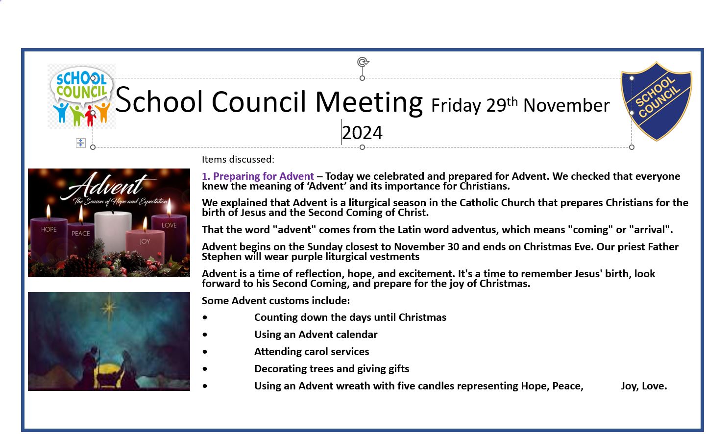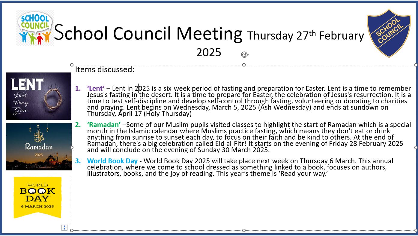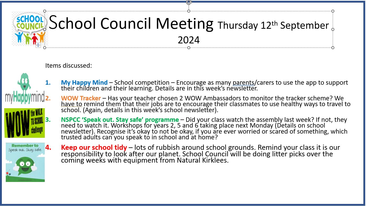 Please see below details of our school council meetings.
