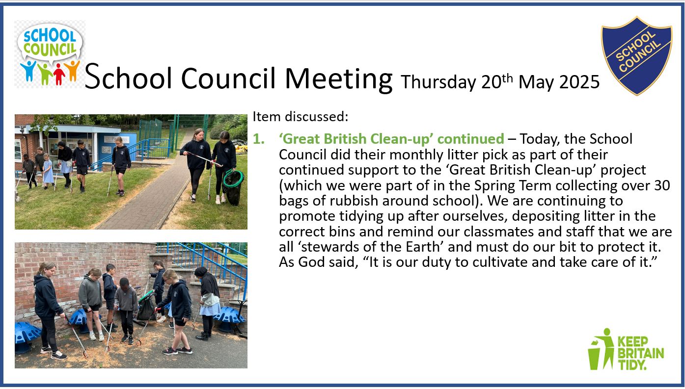 Visit UsThe school council consists of 2 children from each class who are voted in as class councillors for a term of 1 year. In addition, we have extended our school council to include our school ECO team.