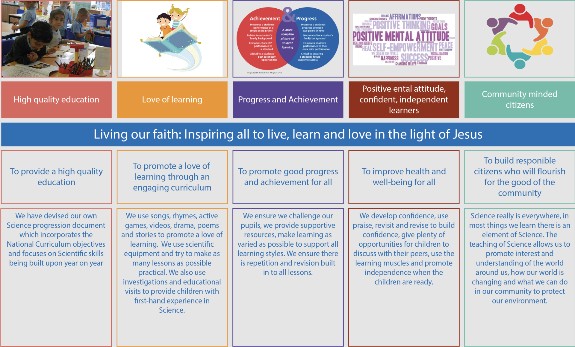 We believe in the importance of our young scientists acquiring life-long enquiry science skills, which support children in the exploration and understanding of the world they live in, alongside the vast knowledge of the disciplines of biology, physics and chemistry. They will develop an understanding of the vital role that major scientific ideas and inspirational scientists have played in society. Throughout their science education, all our children will be prepared for their next stage of science education. Science is taught as a discrete subject, with a focus on substantive knowledge and disciplinary knowledge throughout their time at St Paulinus. The National Curriculum programmes of study and Early Years Foundation Stage framework are fully adhered to and then supplemented with additional knowledge-rich content. This provides a coherent science curriculum that both prepares children extremely well for future learning and gives them the tools to independently investigate and explore the world further. The science curriculum encourages children to be curious about natural phenomena and to be excited by the process of understanding the world around them. We want our children to remember the concepts they learn. Therefore, the curriculum focuses on the sequential development of essential substantive knowledge underpinning biology, chemistry and physics.