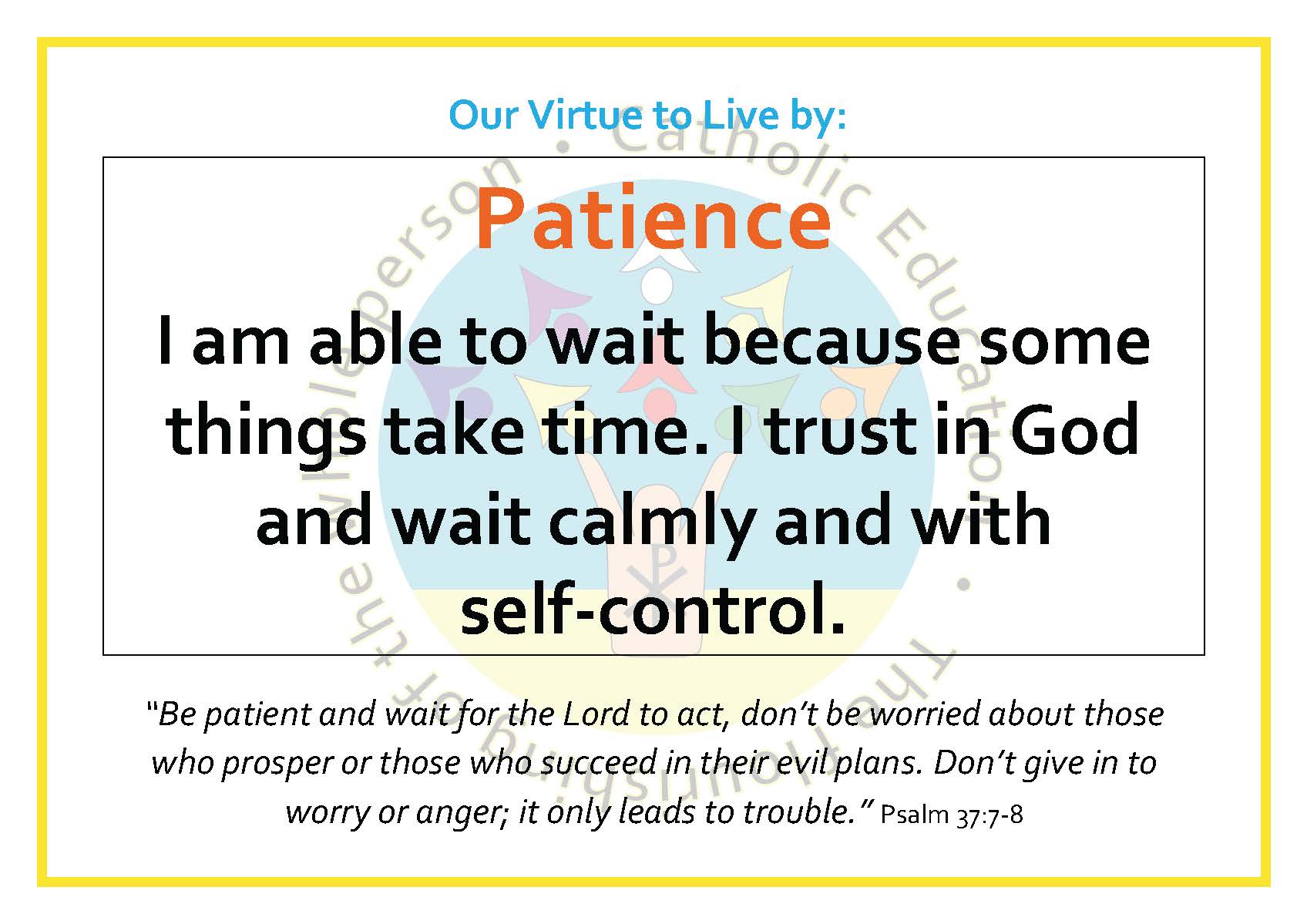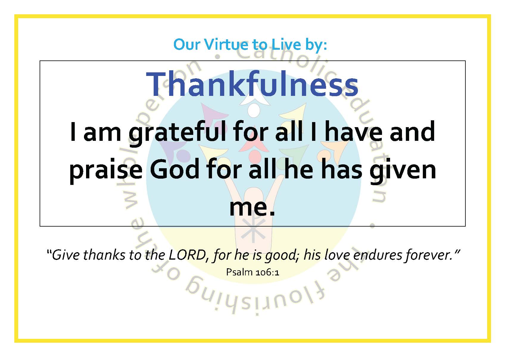 The Virtues for this term are: Respect & Courtesy, Thankfulness, Hope & Patience.