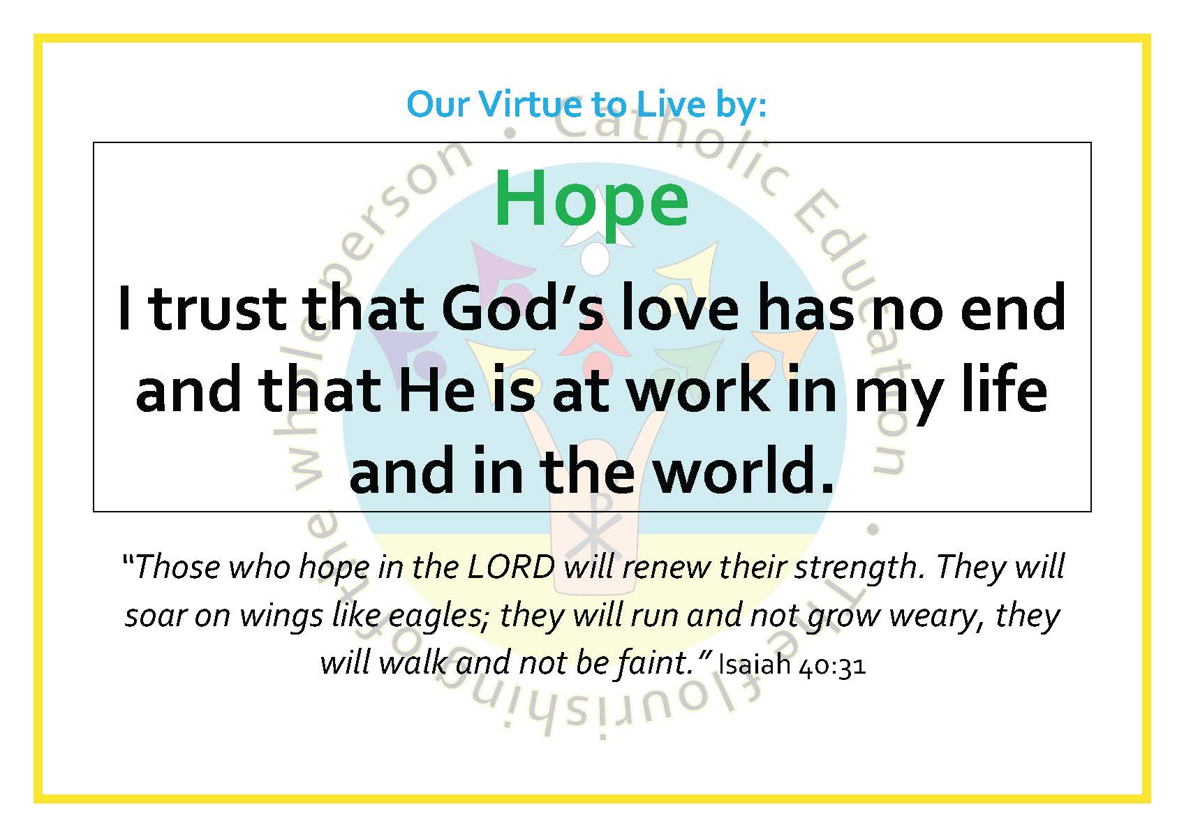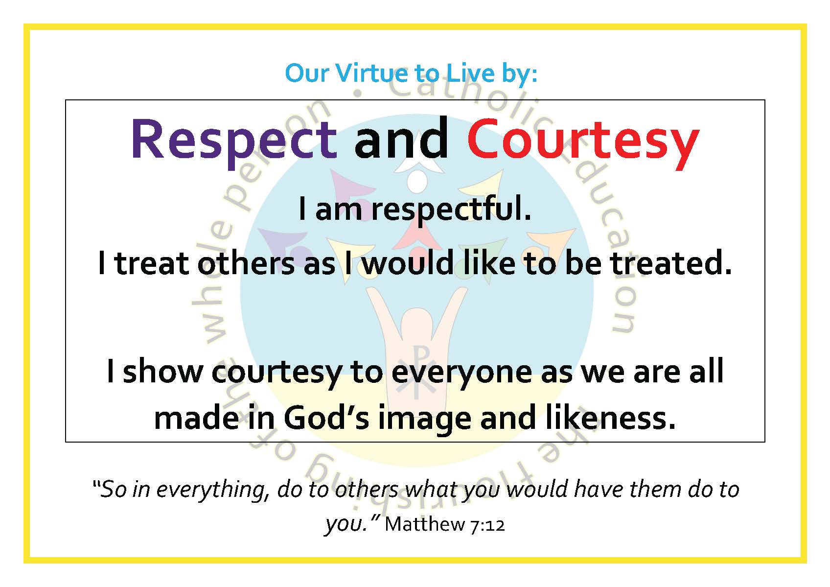 The Virtues for this term are: Respect & Courtesy, Thankfulness, Hope & Patience.